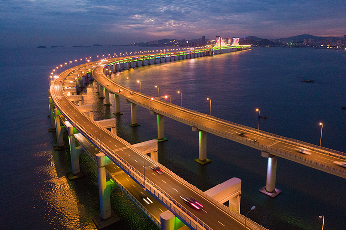 作为都会景观的一部分,桥梁通常是一个地区的地标。因此,其夜景设计应突出其特色,强化其职位。立交桥的照明必需是装饰性的和装饰性的,使桥梁在夜间散发出与白天差别的色泽,轮廓越爆发动和雄伟。
