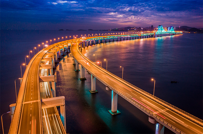 立交桥夜景亮化设计应围绕功效和结构的可能性创立景观,以桥梁和蹊径为统一的整体,形成更高条理的都会形象特色。主要设计理念是将立交桥融入交通环路,形成都会交通功效的整体一连性,实现交通系统的大标准景观,提高辨识度。都会在蹊径的光环中,立交桥是链接的节点。