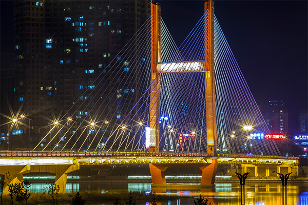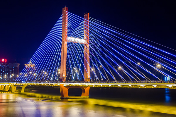 在深入相识桥梁周边情形后,桥梁泛光照明工程使用照明灯充分突出桥梁被照物在周边情形中的位置,与桥梁所属的周边情形造型艺术相融合。需要准确掌握桥梁景观照明所需的照明手艺和照明专业知识,突出桥梁自己与都会夜景生涯的要害环节。
