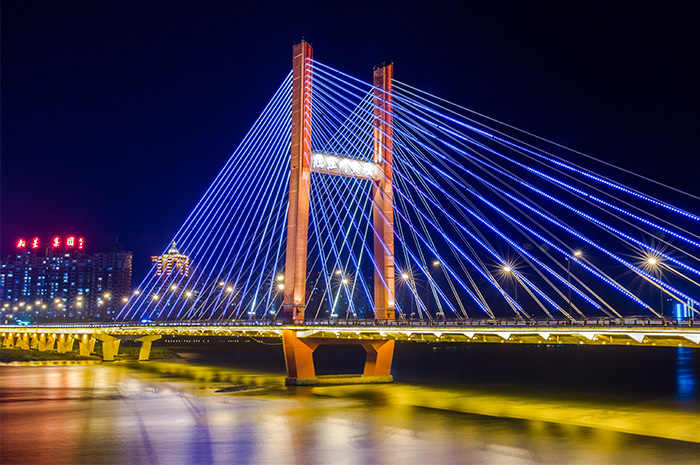 关于桥梁照明工程 ,在节能环保的条件下,还应知足清静恬静的功效照明和迷人的景观照明的统一。这些都要从设计环节入手,综合思量,因地制宜,综合评价。