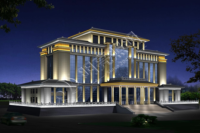 市政亮化工程设计计划应构建灼烁,正经,简约的气氛,但因归属于公共性修建,能够单色光照明为主,部分用小总面积彩色光照明,使颜色更为和气、自然。使市政机关大楼庄重但又不机械降低,透露出一丝动感。
